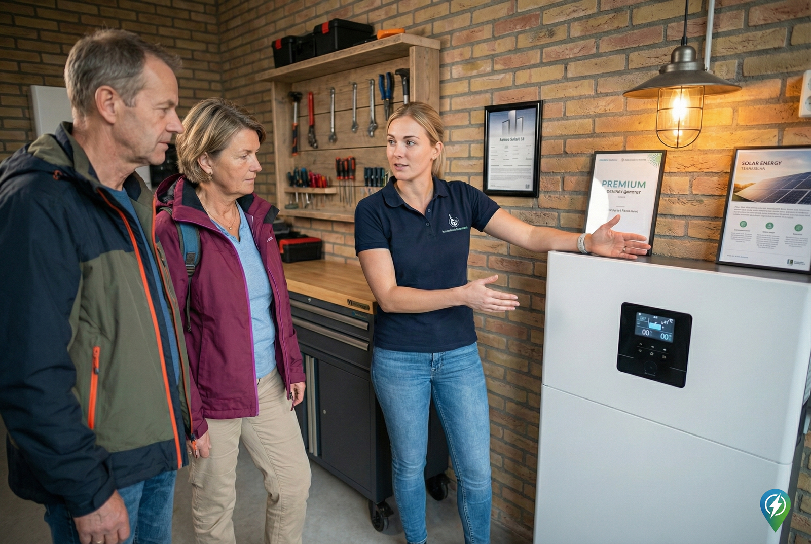 Tijdens een persoonlijk gesprek brengt onze adviseur jouw situatie in kaart om precies te bepalen hoeveel opslagcapaciteit je nodig hebt. Wij werken volledig onafhankelijk met 6 topmerken, zoals Enphase, Sigenergy en Anker SOLIX. Zo ben je altijd verzekerd van eerlijk advies en de beste oplossing voor jouw woning.